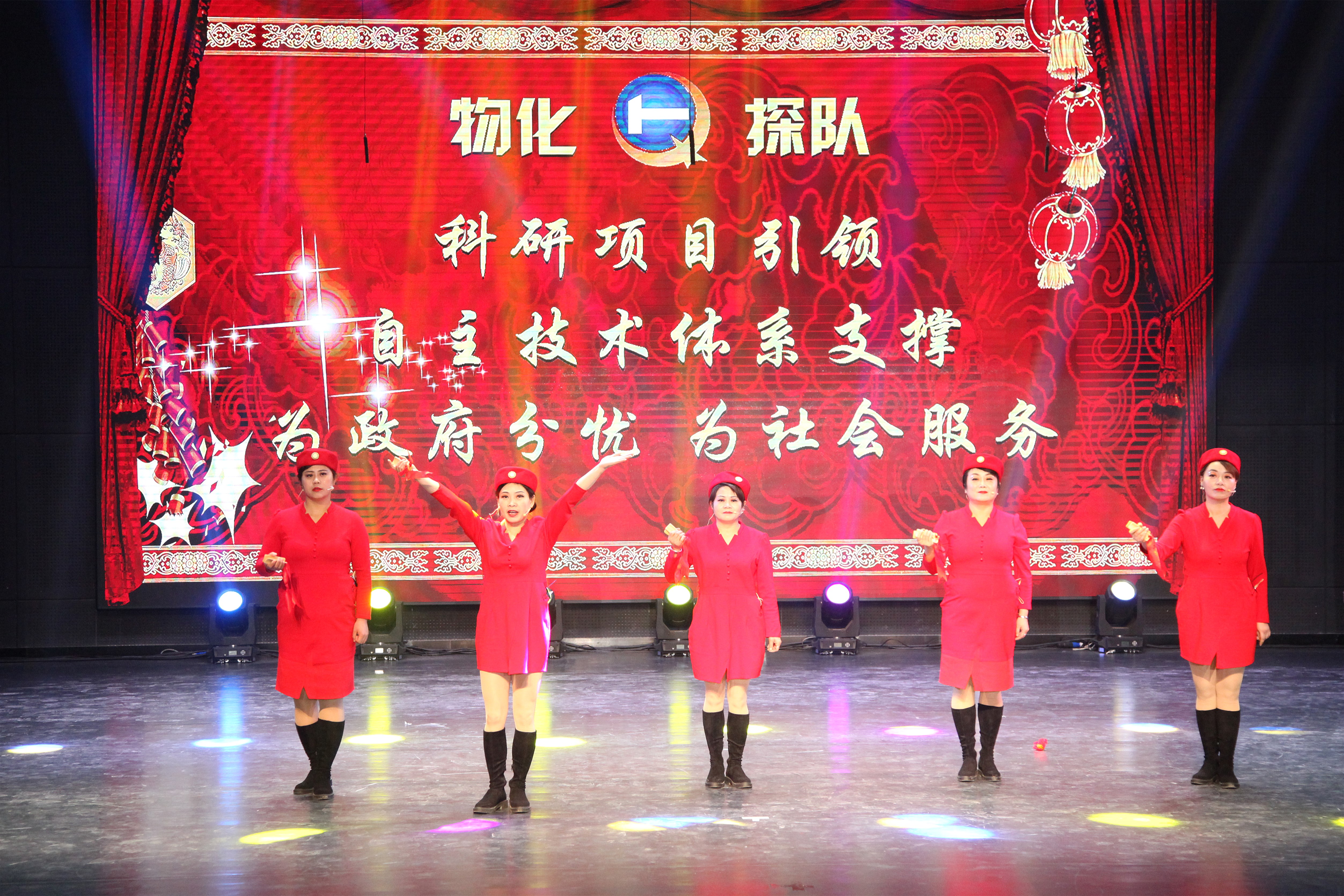 ? ? 我隊選送的節目是自編自演的群口快板—《贊物化探隊》,5名女職工用新穎獨特的表演形式,在舞臺上盡情展現了改革開放四十年來物化探隊發展的重大變化和成就。其靚麗的舞臺形象、精彩的演出獲得了觀眾的熱烈掌聲。
