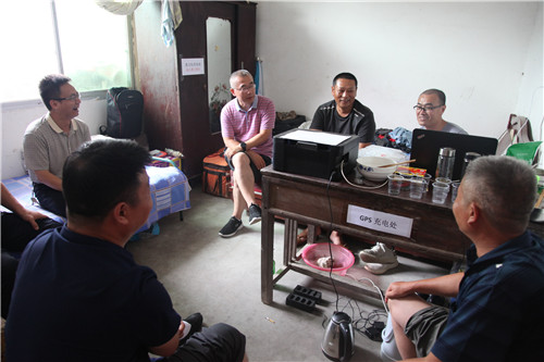 ??? 8月7日上午,鎮巴縣長嶺鎮依然是空氣潮濕、天氣悶熱。檢查組前往漢中市鎮巴縣長嶺鎮望月村,對地質調查所一部承擔的《陜西省鎮巴縣三元-長嶺地區鉀鹽預查》100km的1:2.5萬重力剖面勘查項目進行了檢查。該項目主要任務是:結合1:20萬重力圈定的低重力值異常區,開展重力剖面勘查,進一步確定鉀鹽濃集中心與鹽構造,初步判斷規模、分布特征,為優選鉆孔提供依據。該工區山高陡峭、叢林密布,勘查工作異常艱難。