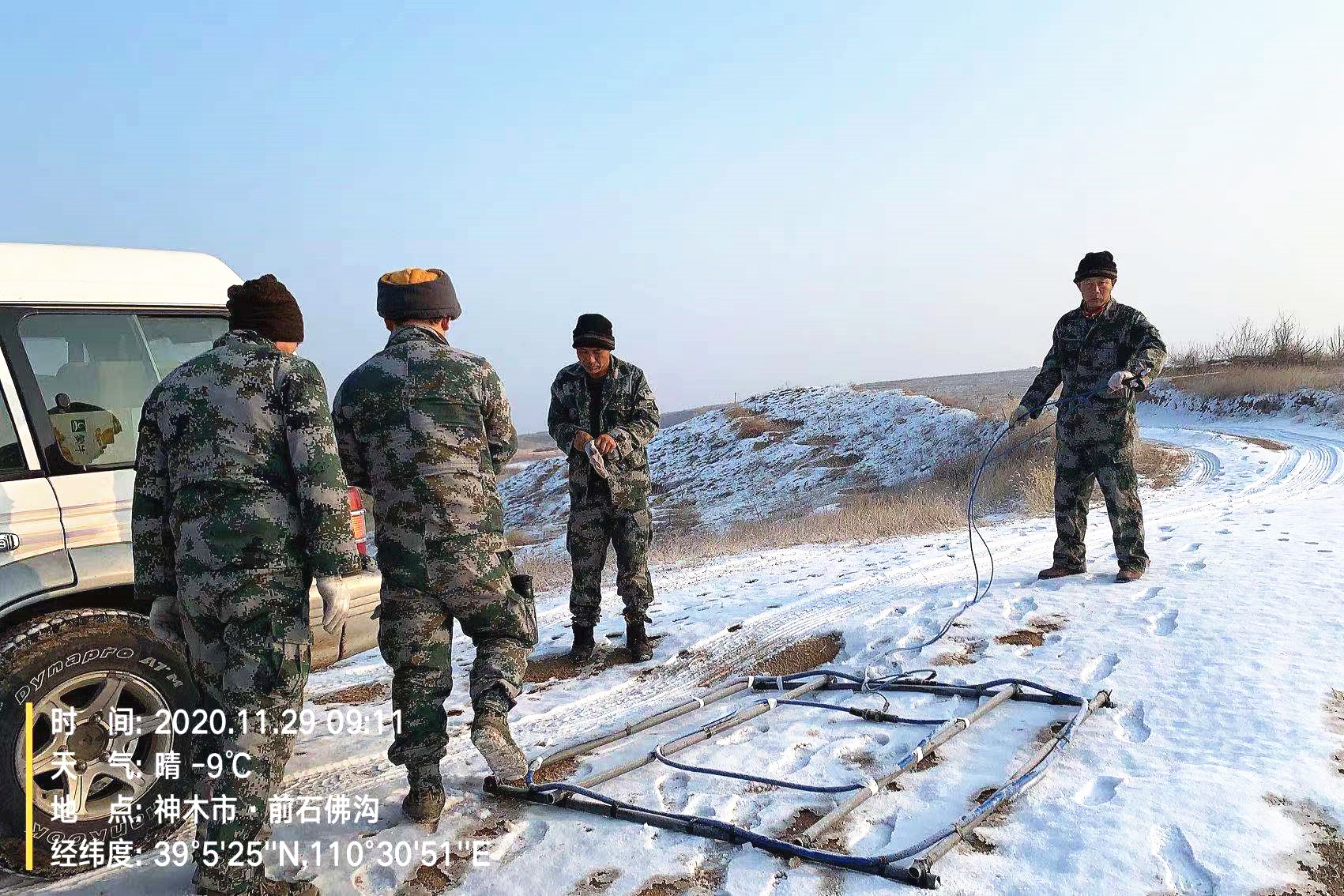 ? ? 工區(qū)位于榆林市神木市店塔鎮(zhèn)楊伙盤村,工作面積8.85平方公里。區(qū)內(nèi)溝壑縱橫,天氣較冷,氣溫達到零下12度,給施工帶來很大困難。為盡快完成施工任務,工程物探公司干部勇于擔當、率先垂范,廣大職工甘于吃苦、無私奉獻,克服了低溫帶來的諸多影響,加緊施工,力爭早日完成工作任務。