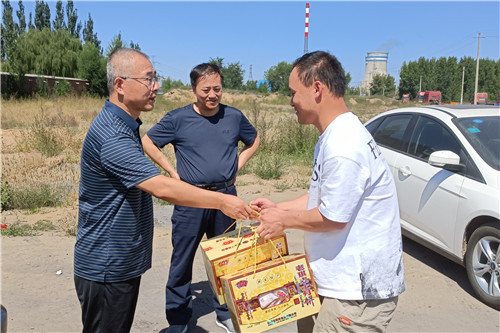 ??? 李新勝一行為一線職工送去了月餅等慰問品,帶去了中秋的問候和祝福。