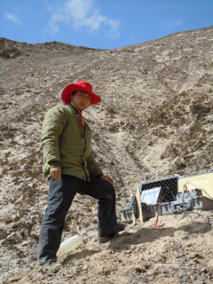 ? ? 高原缺氧 不缺精神。進入工區后,被眼前的一幕幕驚呆了,與想象的工區環境大相徑庭。此時的夏日哈木狂風肆虐,飛沙滿天,陰晴不定,時有風雪交加,夜間氣溫會降至零攝氏度以下。區內海拔4000多米,地形陡峭,相對高差大,加之幾乎沒有植被,項目組好多人員出現嚴重不適,頭疼、氣短、嘴唇開裂,加之區內不明原因,蚊子多得出奇,只要你人站在帳蓬外面總有上百只蚊子在叮咬你,一會兒頭上、臉上、手上全是包。面對如此惡劣的環境,田靖和項目組的人員逐一進行談心,鼓勵大家從心理上戰勝惡劣的自然環境,穩定了軍心。為了保證施工進度和防止發生不安全事故,田靖同志總是利用休息時間先對不熟悉的區塊進行踏勘做到心中有數,面對惡劣的地形,他時時強調安全,隔三差五的開會強調,每天開工上山、收工下山用對講機通知到項目組的每個人,并且制定了嚴格的安全制度,使每個人從心理上重視安全,整個工區沒有發生一起意外事故。