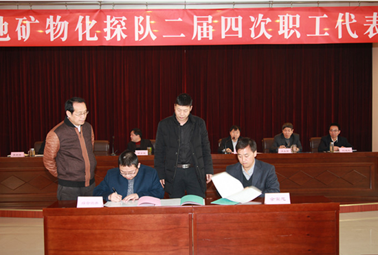 ? ? 會議確定了2017年生產經營目標,總收入5500萬元,總利潤640萬元。黨委書記、隊長王新坪和班子各成員、各實體部門之間,層層簽訂了生產經營目標責任書、黨風廉政建設責任書和安全生產責任書;機關各部門負責人與各實體負責人簽訂了對接服務方案;實體領導班子成員、機關各部門負責人在分組討論會上分別進行了述職述廉;會議通過了《陜西地礦物化探隊經濟責任制暫行辦法》;表彰獎勵了2016年度做出突出貢獻和優異成績的先進集體和優秀員工。