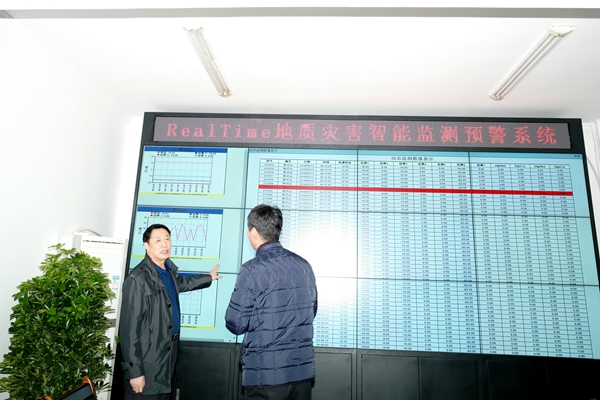 ??? 趙廷周一行實(shí)地參觀了地質(zhì)災(zāi)害監(jiān)測(cè)預(yù)警中心“RealTime地質(zhì)災(zāi)害智能監(jiān)測(cè)預(yù)警系統(tǒng)”,并詳細(xì)了解了智能監(jiān)測(cè)預(yù)警系統(tǒng)工作平臺(tái)的運(yùn)行情況。趙廷周對(duì)物化探隊(duì)加大技術(shù)創(chuàng)新力度、加強(qiáng)地質(zhì)災(zāi)害評(píng)估和勘查能力建設(shè)所取得的成績(jī)給予充分肯定。同時(shí)希望物化探隊(duì)將技術(shù)優(yōu)勢(shì)更多地應(yīng)用于工作實(shí)踐,不斷開(kāi)拓新領(lǐng)域,達(dá)到新高度,實(shí)現(xiàn)新發(fā)展,艱苦奮斗再創(chuàng)業(yè),在踐行“三個(gè)地礦”的征程中取得新的更大的成績(jī)。