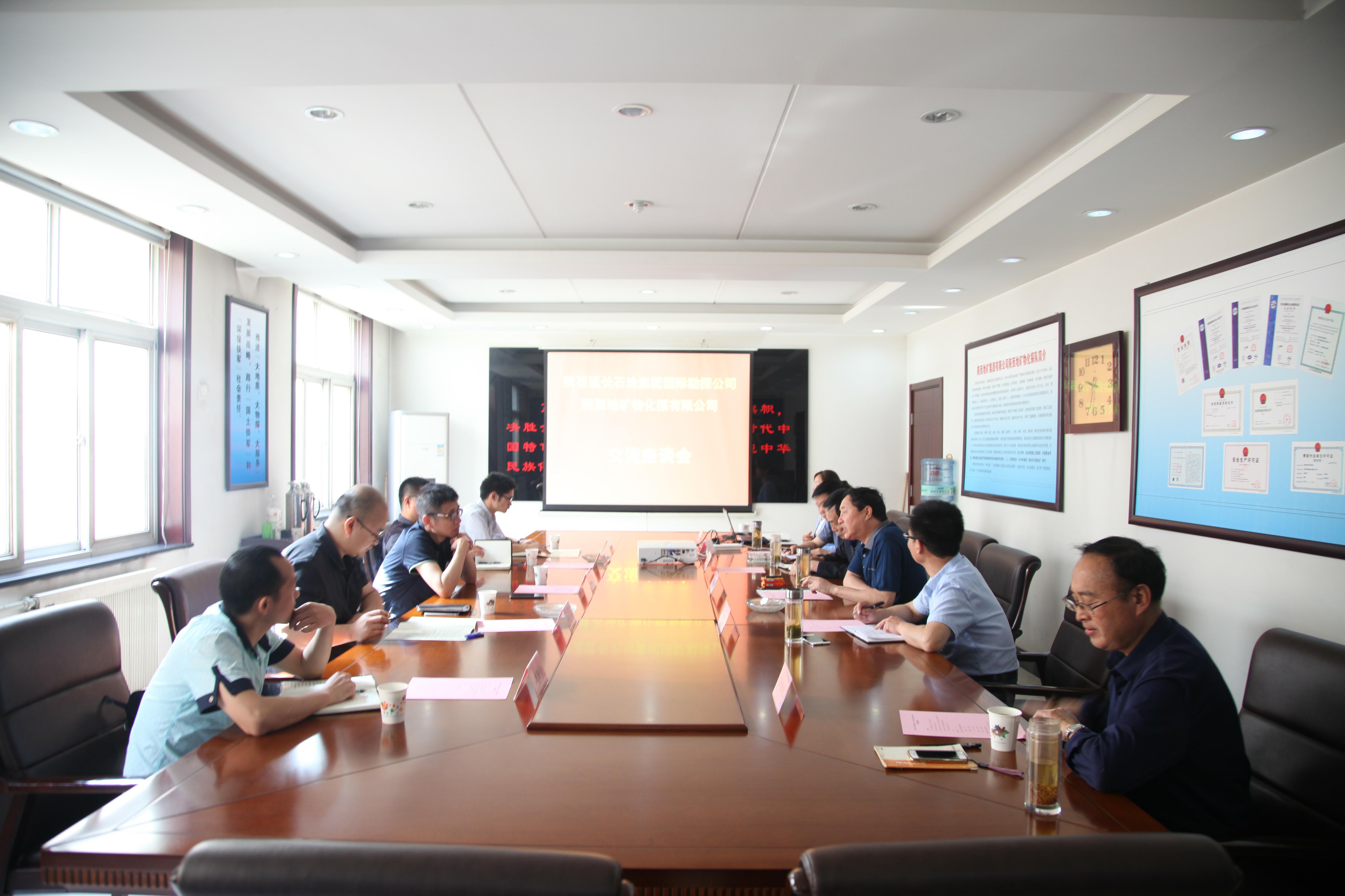 ? ? 公司黨委書記、執行董事、總理王新坪,首先向劉建宏經理一行到來表示熱烈歡迎,并介紹了公司基本情況、產業結構,在地熱能勘查、油氣調查,城市地質測井、管線探測、地質災害智能監測預警等方面的技術體系與勘查成果。劉建宏介紹了國際勘探公司基本構架、主要業務、技術實力,以及目前正在開展的陜西省地熱能利用攻關項目。