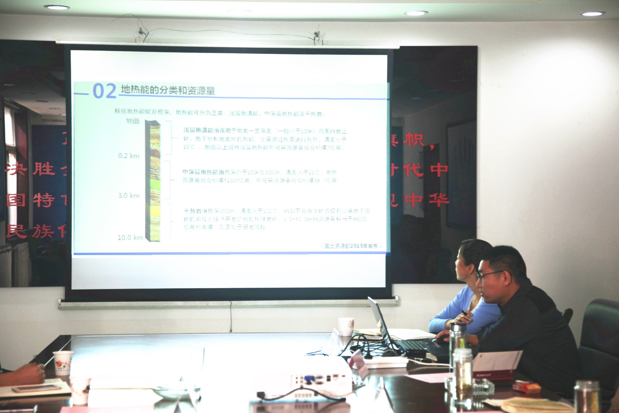 ? ? 隨后,雙方進行了技術交流。國際勘探公司介紹了“延長石油中深層地熱能清潔供暖技術”,我公司介紹了“渭河盆地地熱資源相關情況”,并就渭河盆地干熱巖開發利用進行了深入的探討交流,達成合作意向,雙方一致表示發揮各自優勢,積極開展相關工作。