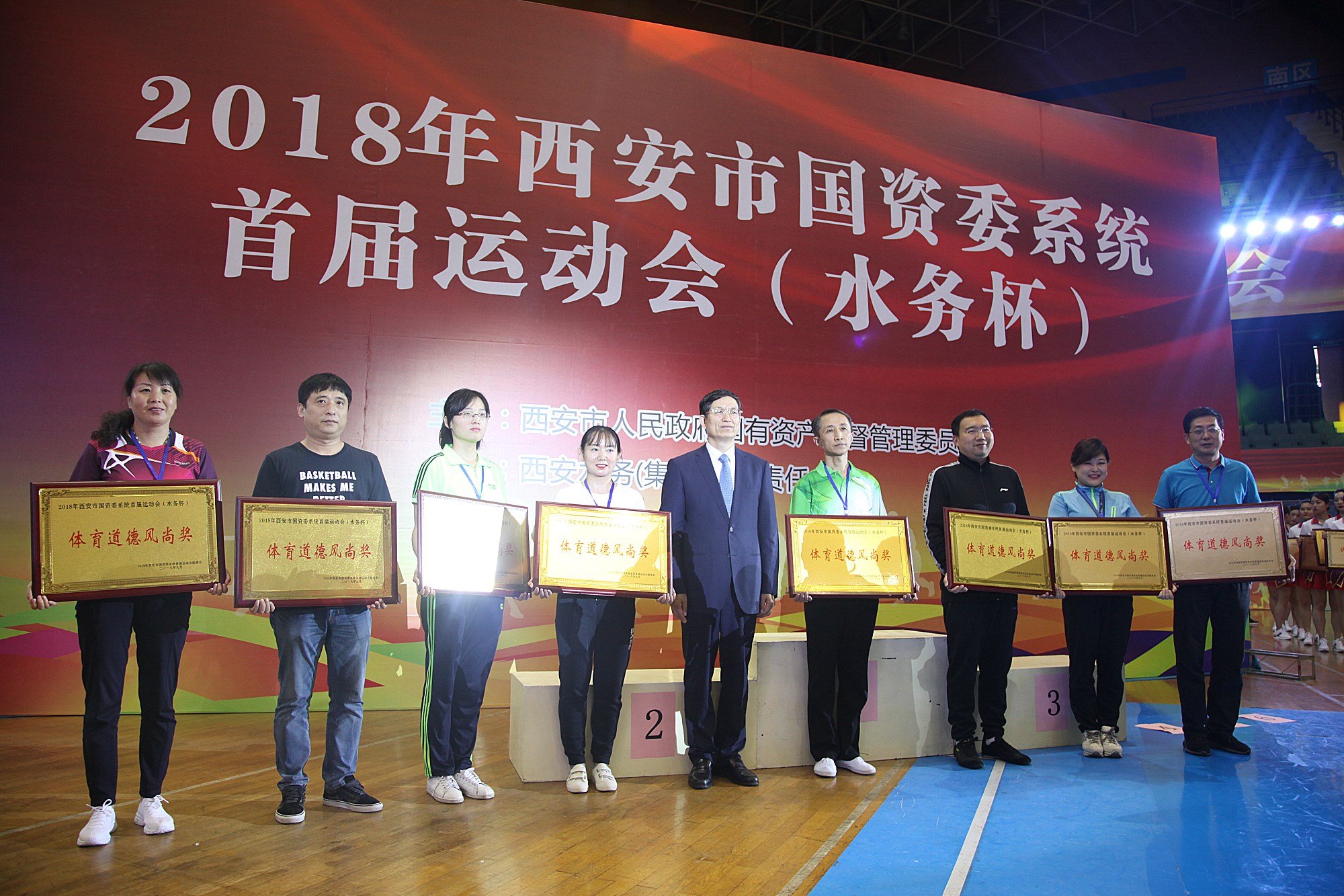 ? ? 2018年9月19,西安市國資委系統首屆運動會在西安市運動公園體育館如期舉行。我隊按組委會要求派出了包含旗手在內的21人方陣出席了開幕式。比賽經過3天激烈的角逐,于21日圓滿閉幕。閉幕式上舉行了頒獎儀式,我隊喜獲“體育道德風尚獎”。?